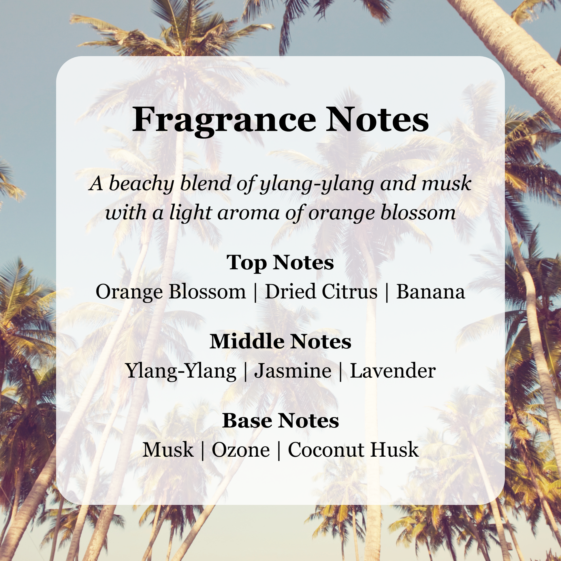 A beachy blend of ylang-ylang and musk with a light aroma of orange blossom.
