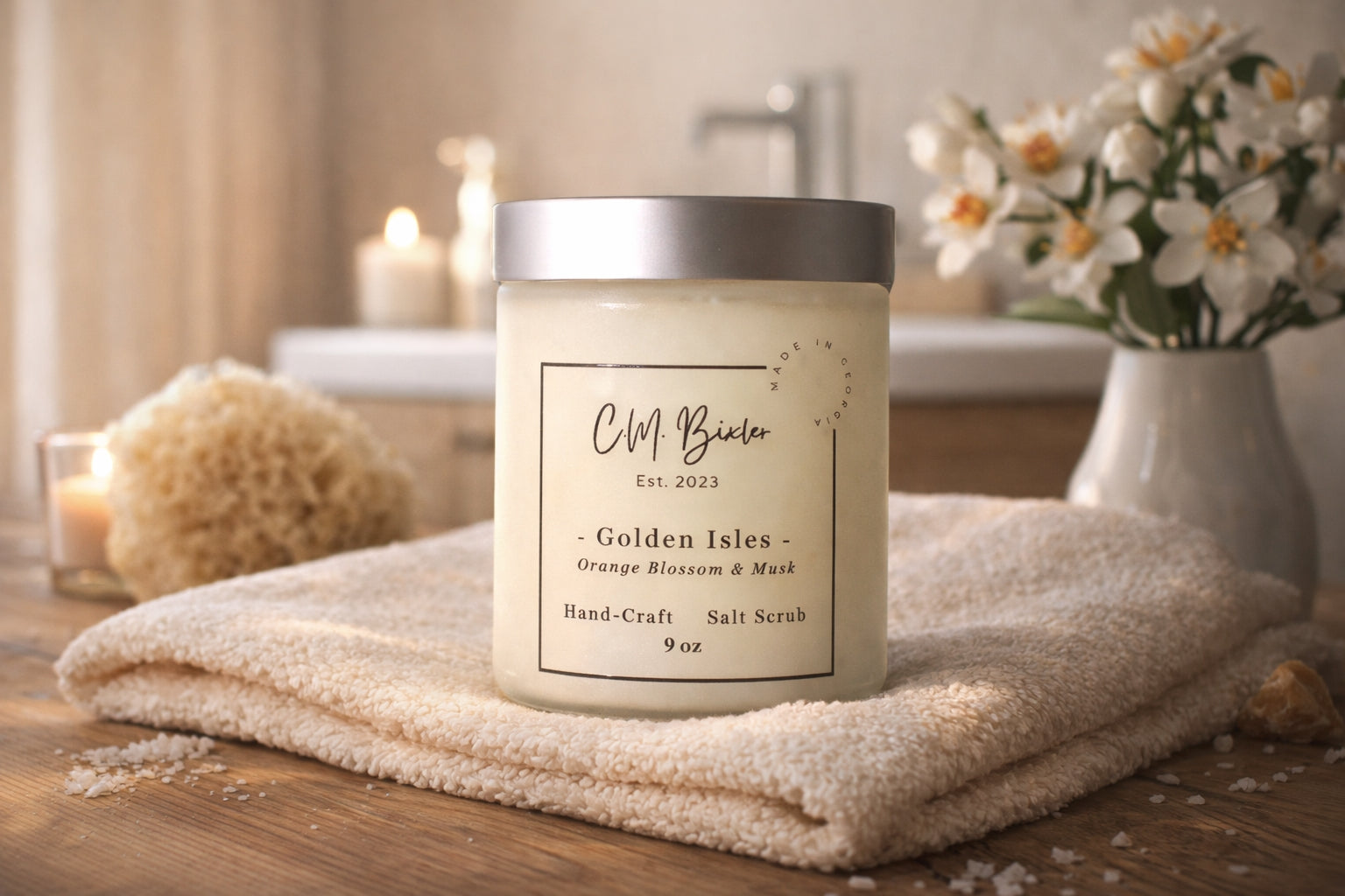 At C.M. Bixler, our salt scrubs are crafted as elevated body‑care essentials—pure ingredients, refined textures, and a focus on delivering a polished, radiant finish to the skin.